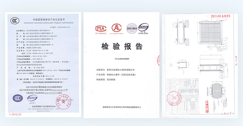 產(chǎn)品按GB14102-2005《防火卷簾》標準檢驗,耐火時間≥3小時,其性能和質(zhì)量均達到公安部消防產(chǎn)品合格評定中心3C強制認證標準。